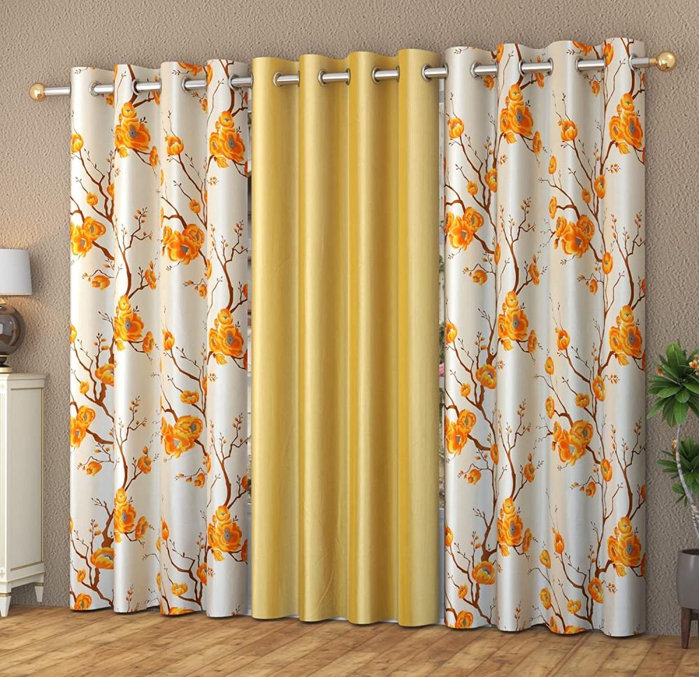 Ecora Polyester Eyelet Printed Floral Curtains for Home